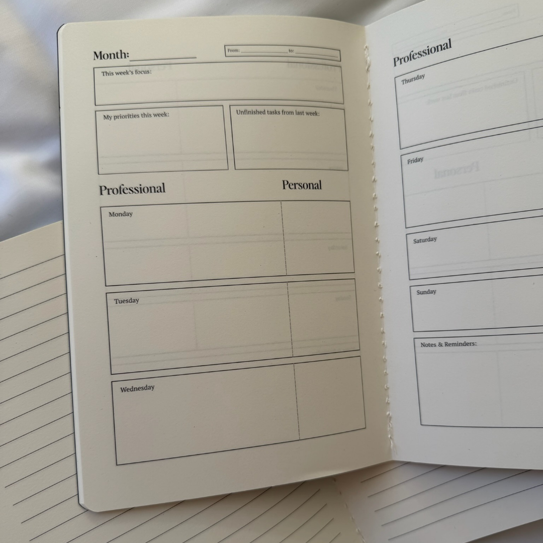 Select from five different notebook styles, designed for journaling, planning, reflection, and everyday notes.