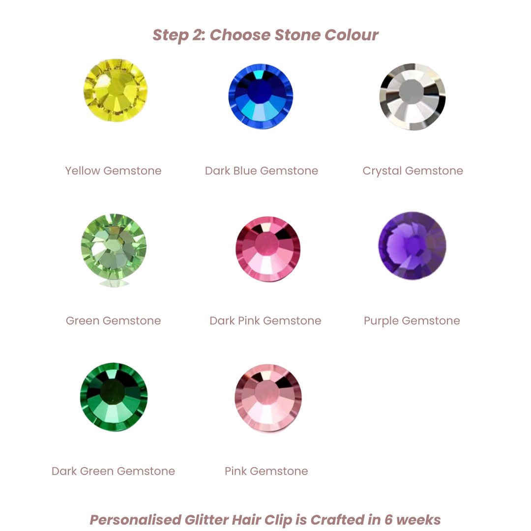 Design your own Custom FAINE Hair Clip for a more unique touch. Choose your favorite hair clip and your favorite gemstone for your name or initials.
