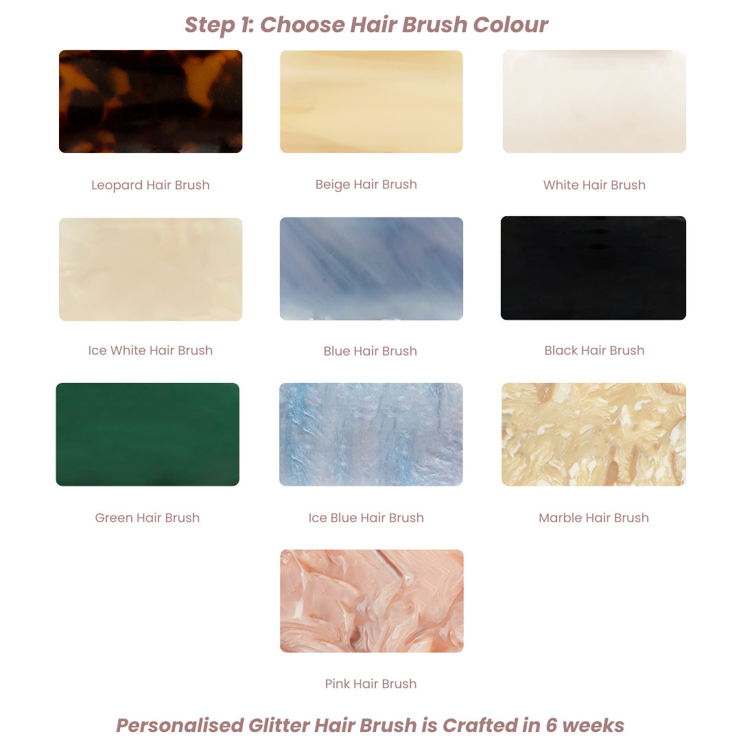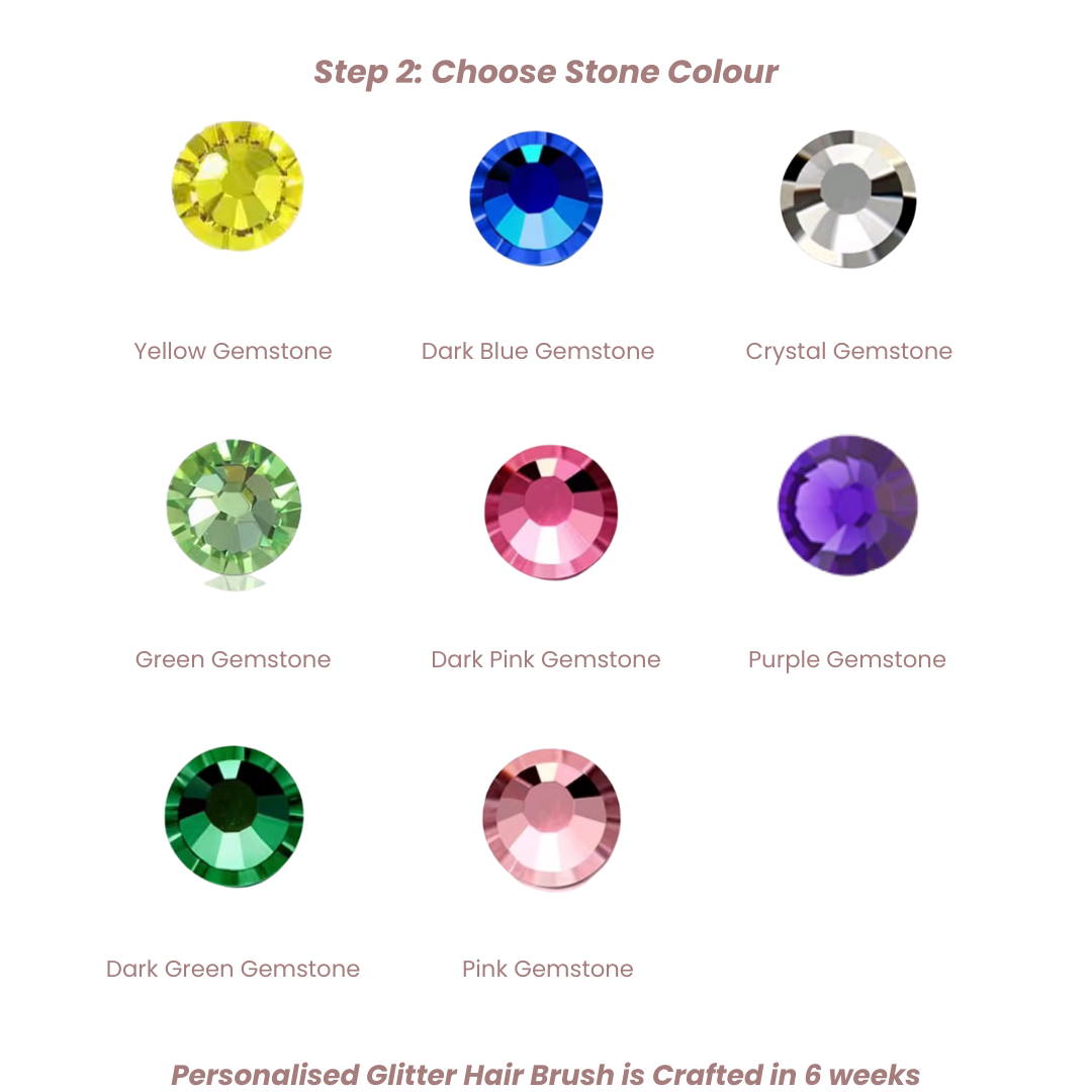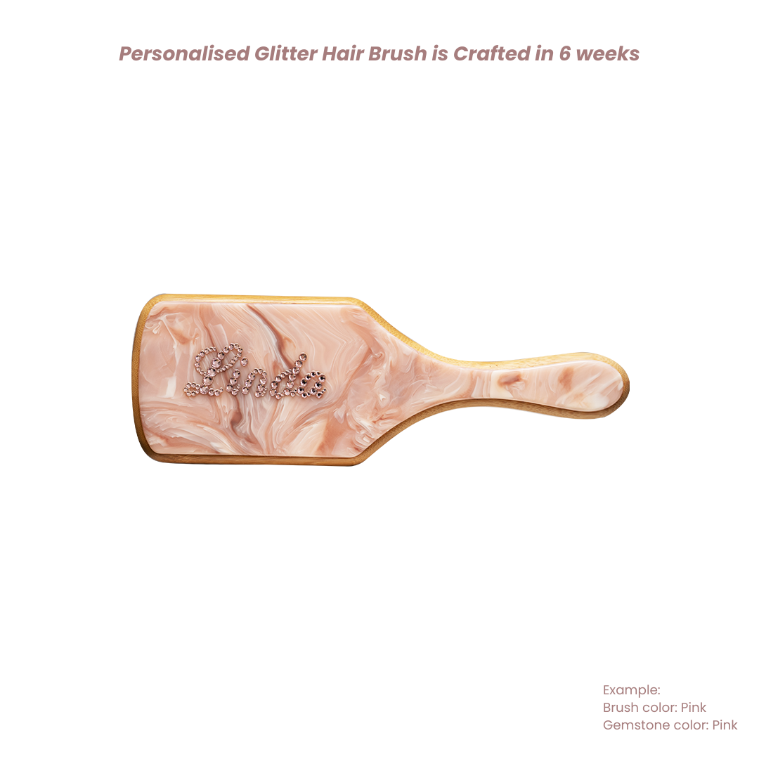 Design your own Custom FAINE Hair Brush for a more unique touch. Have your name or initials written with your favorite gemstone colour.